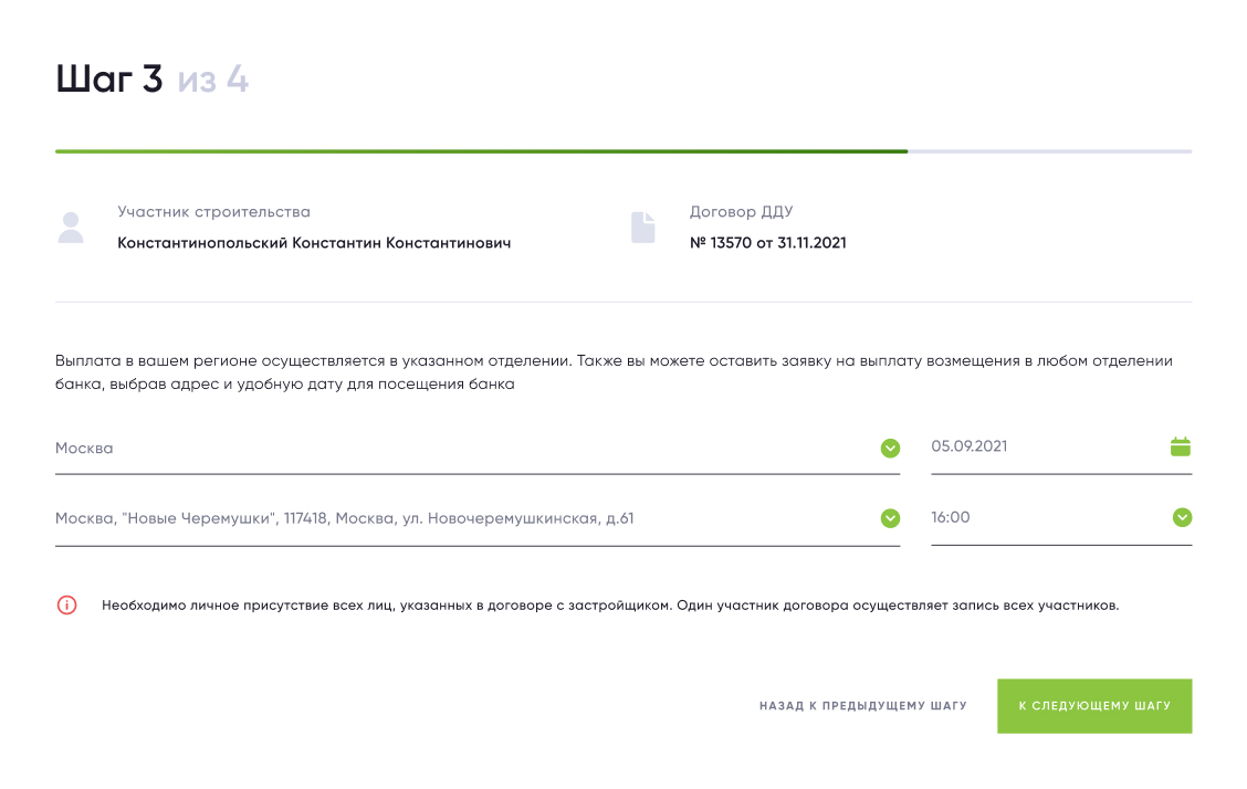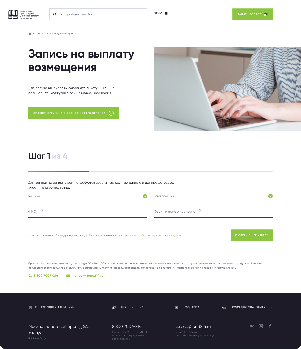 Система предоставляет доступ к непосредственной подаче заявления, только если Фонд уже начал выплату компенсаций. Если выплата не началась, пользователь не может пройти дальше. Система отправляет ему уведомление с просьбой подать заявку позже.