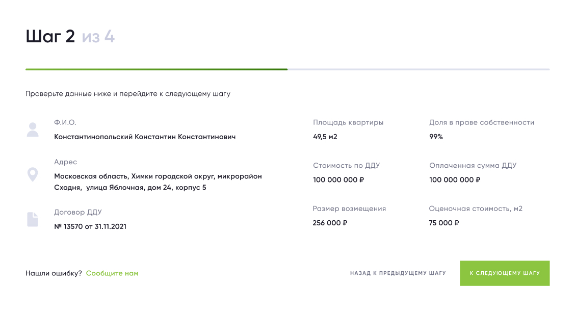 Если в данных заявки выявлена ошибка, пользователю отправляется уведомление, и он должен подать ее снова.