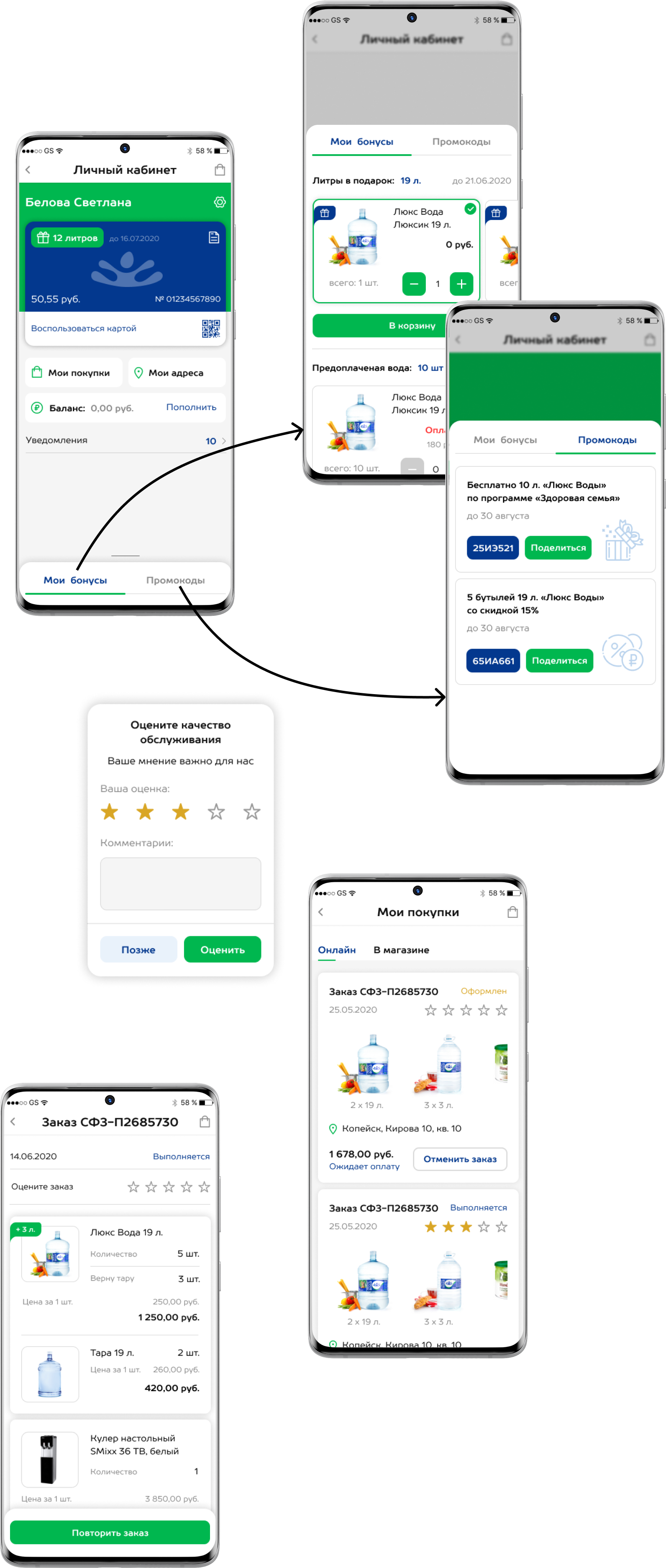 • Предоставление текущим клиентам компании удобного сервиса по заказу воды и сопутствующей продукции с учетом текущей программы лояльности (важный момент - новые механики акций и спецпредложений появляются каждый месяц).