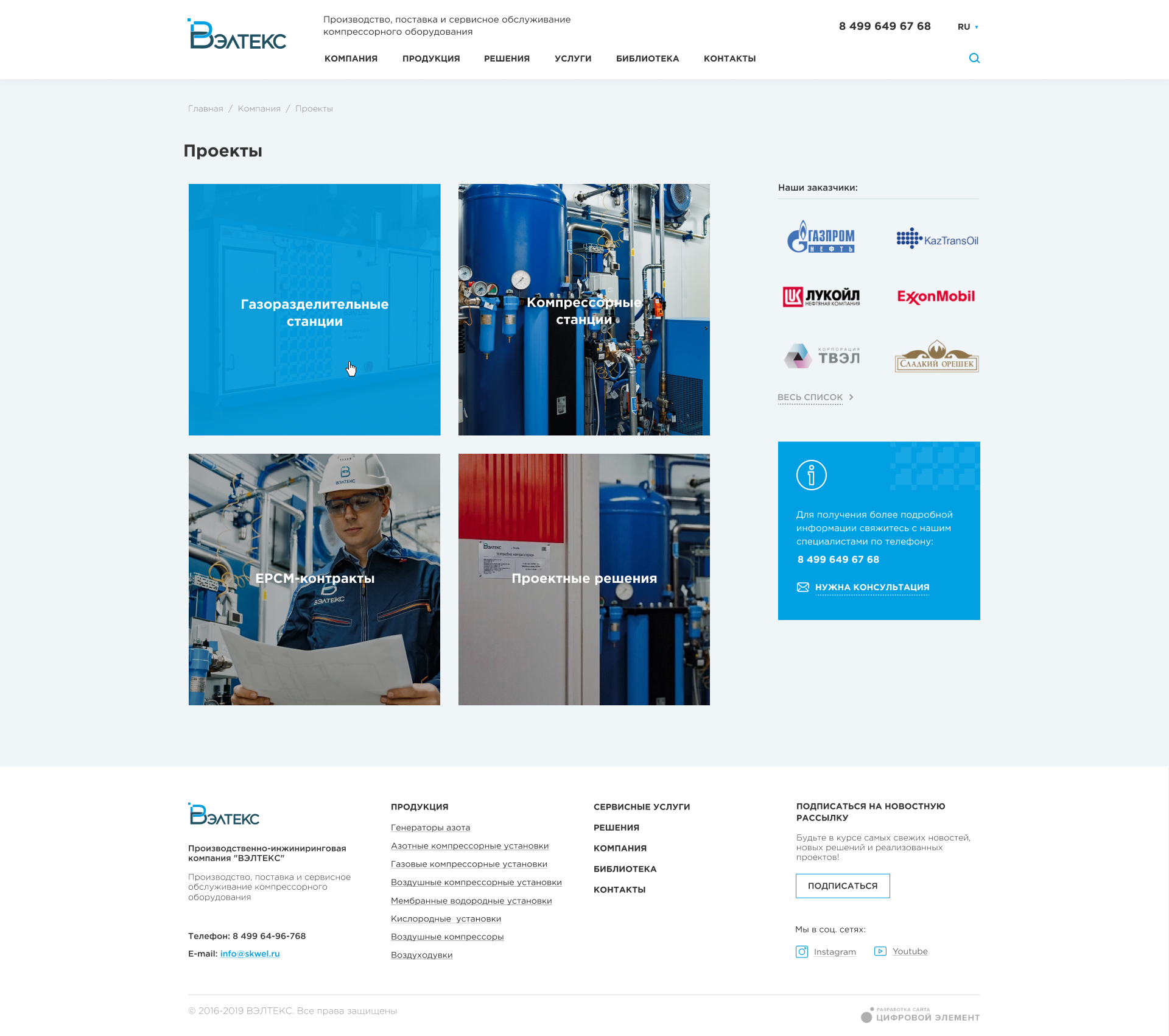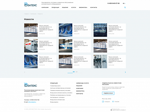«ВЭЛТЕКС» — динамично-развивающаяся компания, специализирующаяся на производстве компрессорного оборудования премиум-сегмента и предоставлении услуг в комплексе от разработки и производства азотных и воздушных станций до ввода оборудования в эксплуатацию и его послепродажного обслуживания.